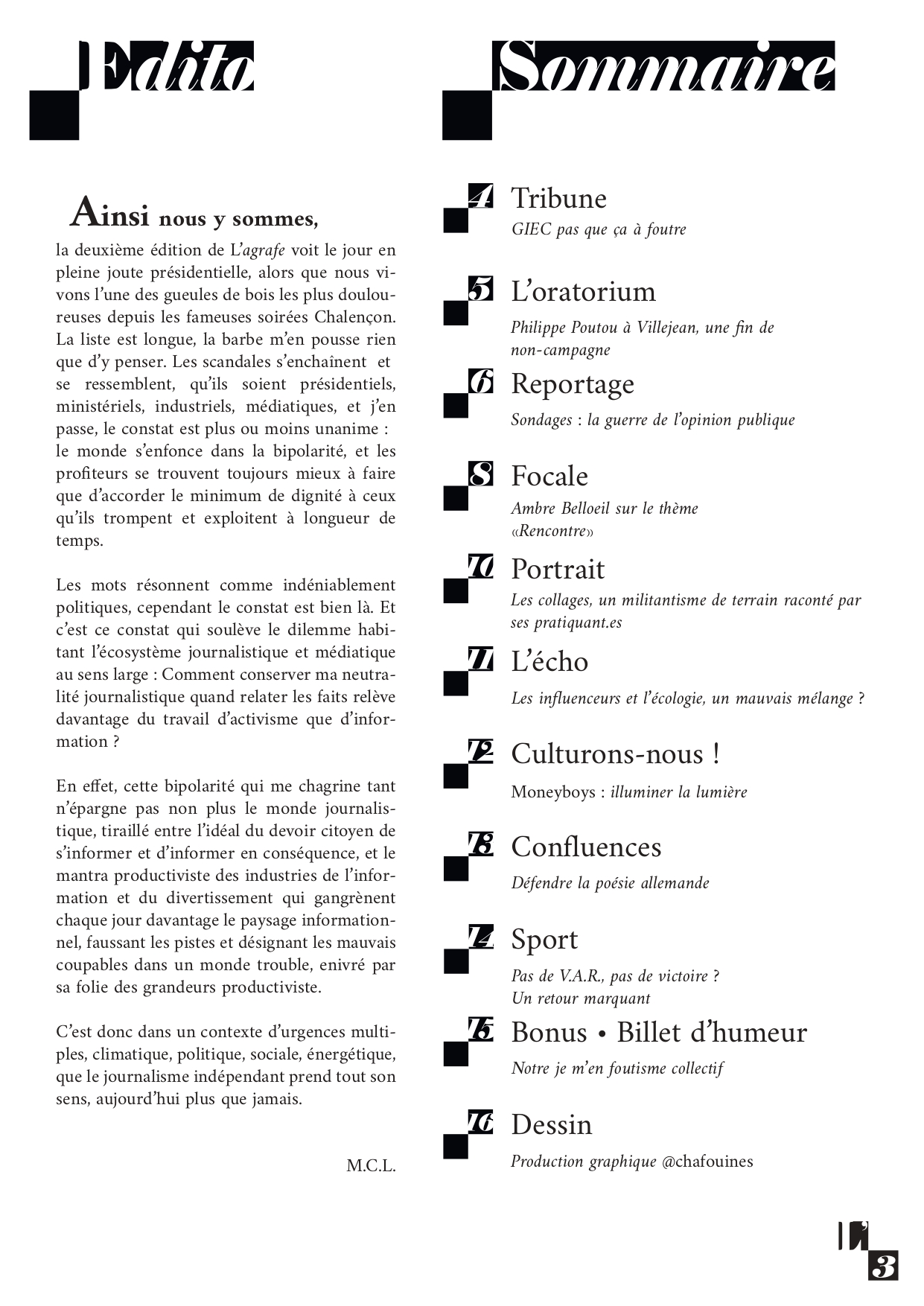 Exemple charte graphique de 2022 du journal l'Agrafe
